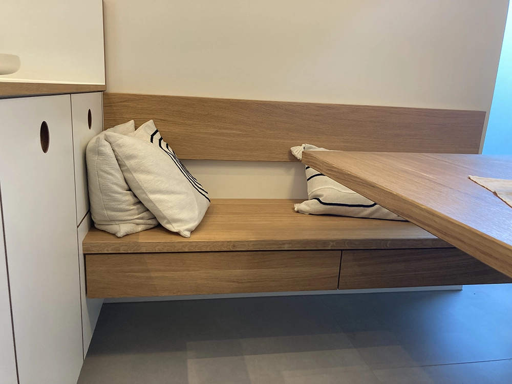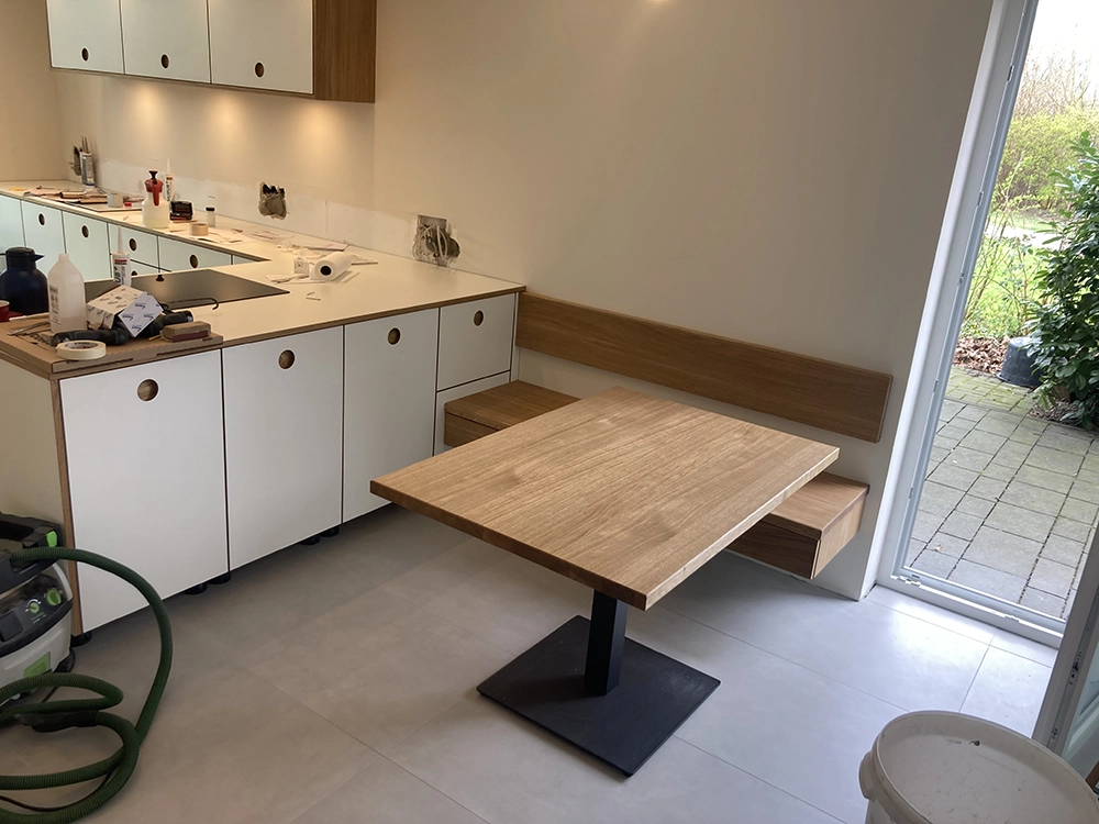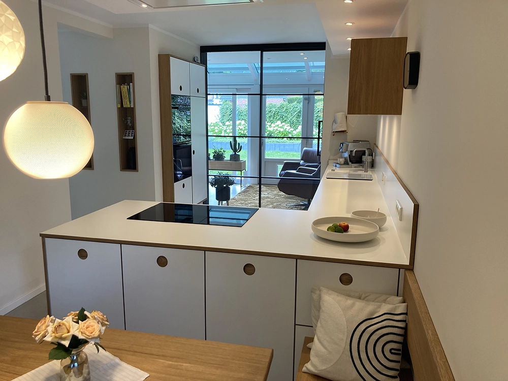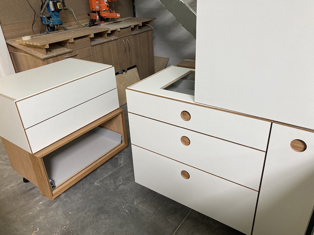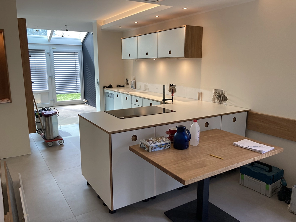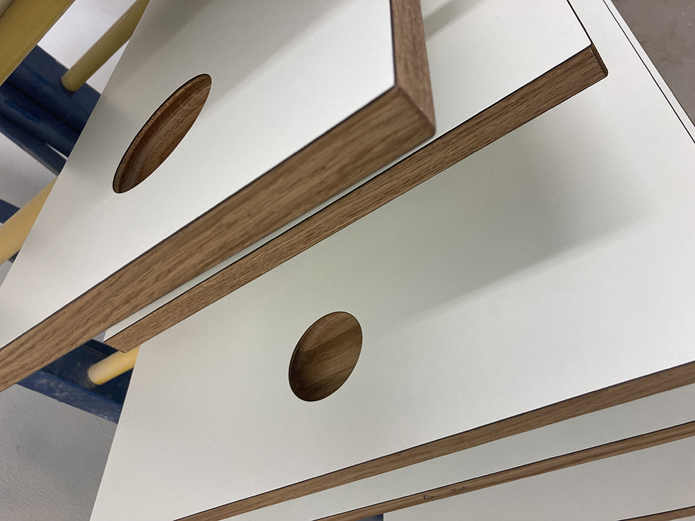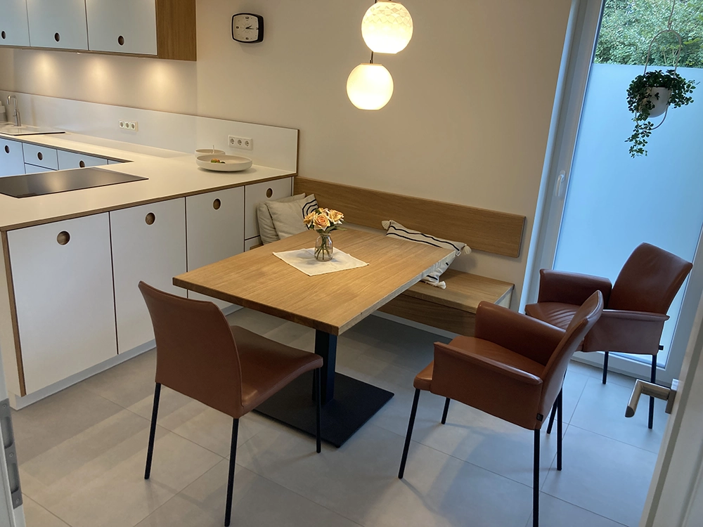 Wir möchten Ihnen gerne den beispielhaften Prozess hinter einem unserer Kundenprojekte vorstellen und so Einblicke in unsere Arbeit gewähren. In diesem Fall haben wir einen kompletten Raum individuell geplant und umgesetzt – selbstverständlich wie immer in Stückzahl 1. Eine Besonderheit war dabei die eigens entwickelte Grifflösung: selbst gefräste Griffmuscheln, die mit HPL. beschichtet wurden. An diesem Projekt zeigen wir Ihnen Schritt für Schritt, wie aus einer Idee ein maßgeschneiderter Raum mit einzigartigem Charakter entsteht.